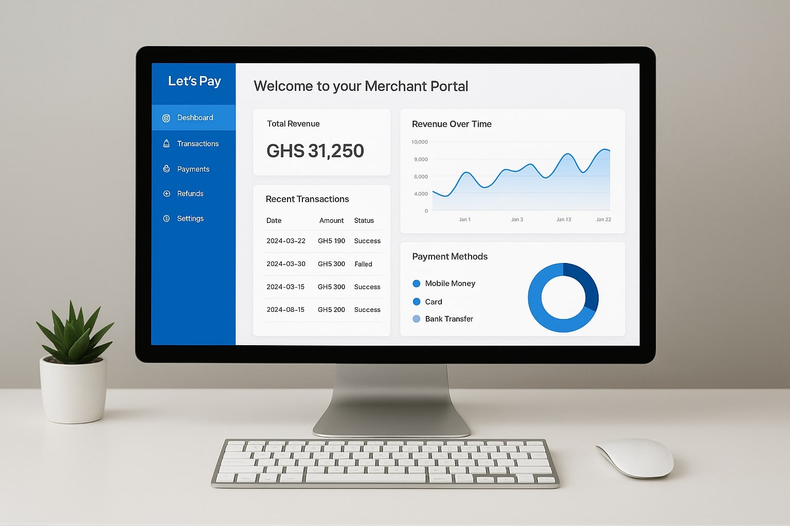 - The Let’s Pay Merchant Portal gives small and medium businesses complete control over their payments and operations. From a single dashboard, merchants can monitor real-time transactions, generate detailed sales reports, and access analytics that help make smarter business decisions. Designed for simplicity and speed, the portal empowers businesses to grow confidently in Ghana’s digital economy.